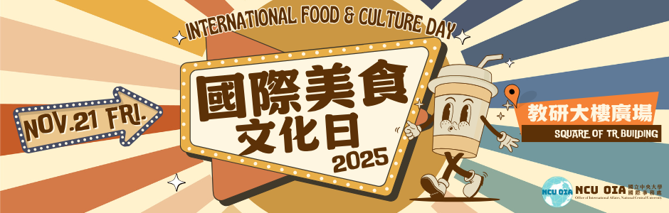 - 【臺灣學生X國際學生】2025國際美食文化日 |11/21 (五) 11:00-15:00 教研大樓一樓廣場