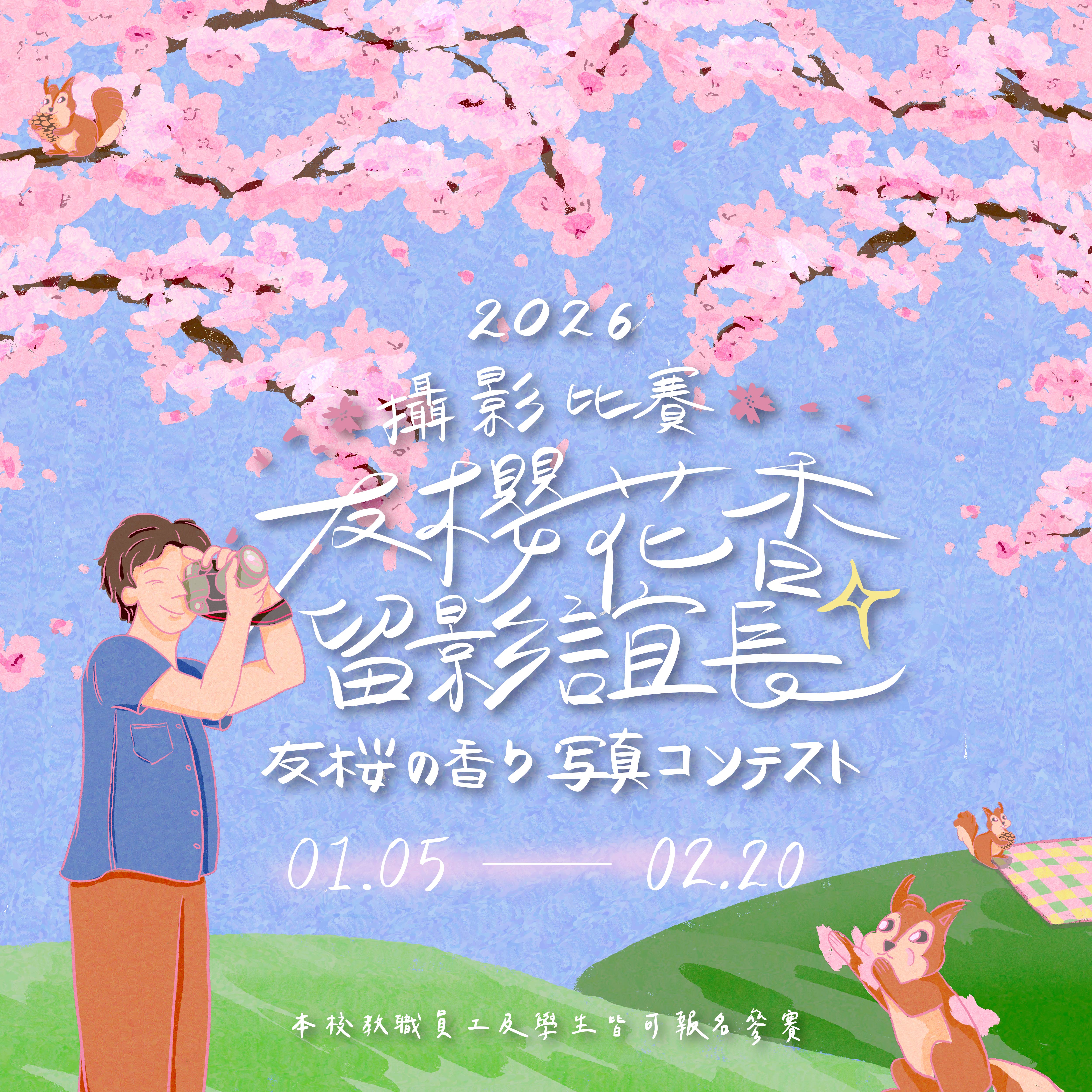 國際處邀請全校教職員工與同學一起用鏡頭留下屬於「友誼 × 櫻花」的故事 (´▽`ʃ♡ƪ)